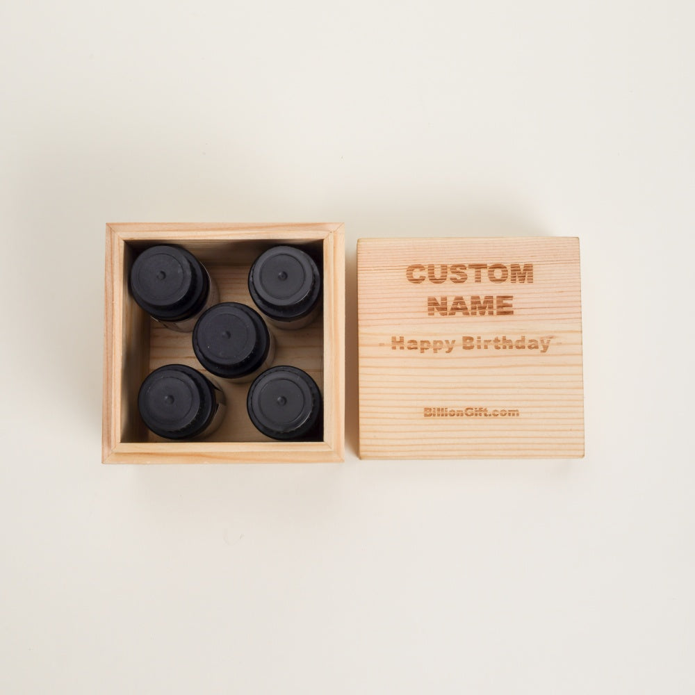 Discover the world’s first scent collection made uniquely for you. Enhance the ambiance and energy of both yourself and your space with this personalized set, featuring a wooden box engraved with your name and aromatic cedar chips. Our pure, natural plant essential oils can be used for aromatherapy, bathing, and our other diffuser products, such as wearable scent wish bracelets.