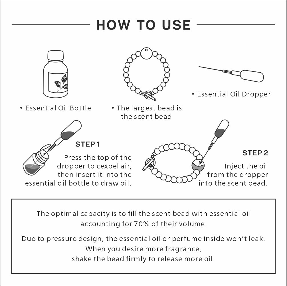 · Due to pressure design, the essential oil or perfume inside won’t leak. When you desire more fragrance, shake the bead firmly to release more oil.