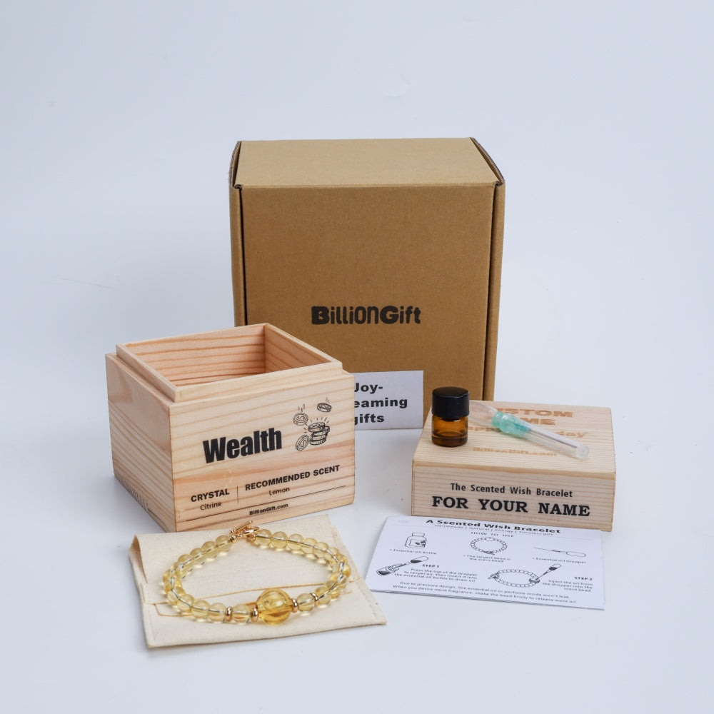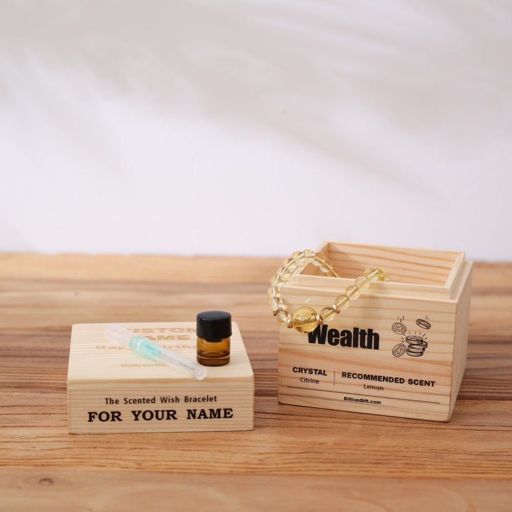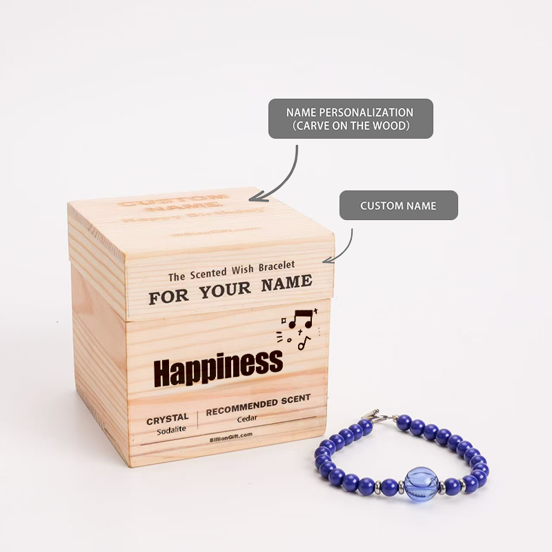 Add a name to the box’s front label or engrave it on the wooden lid to make your wish bracelet uniquely special.